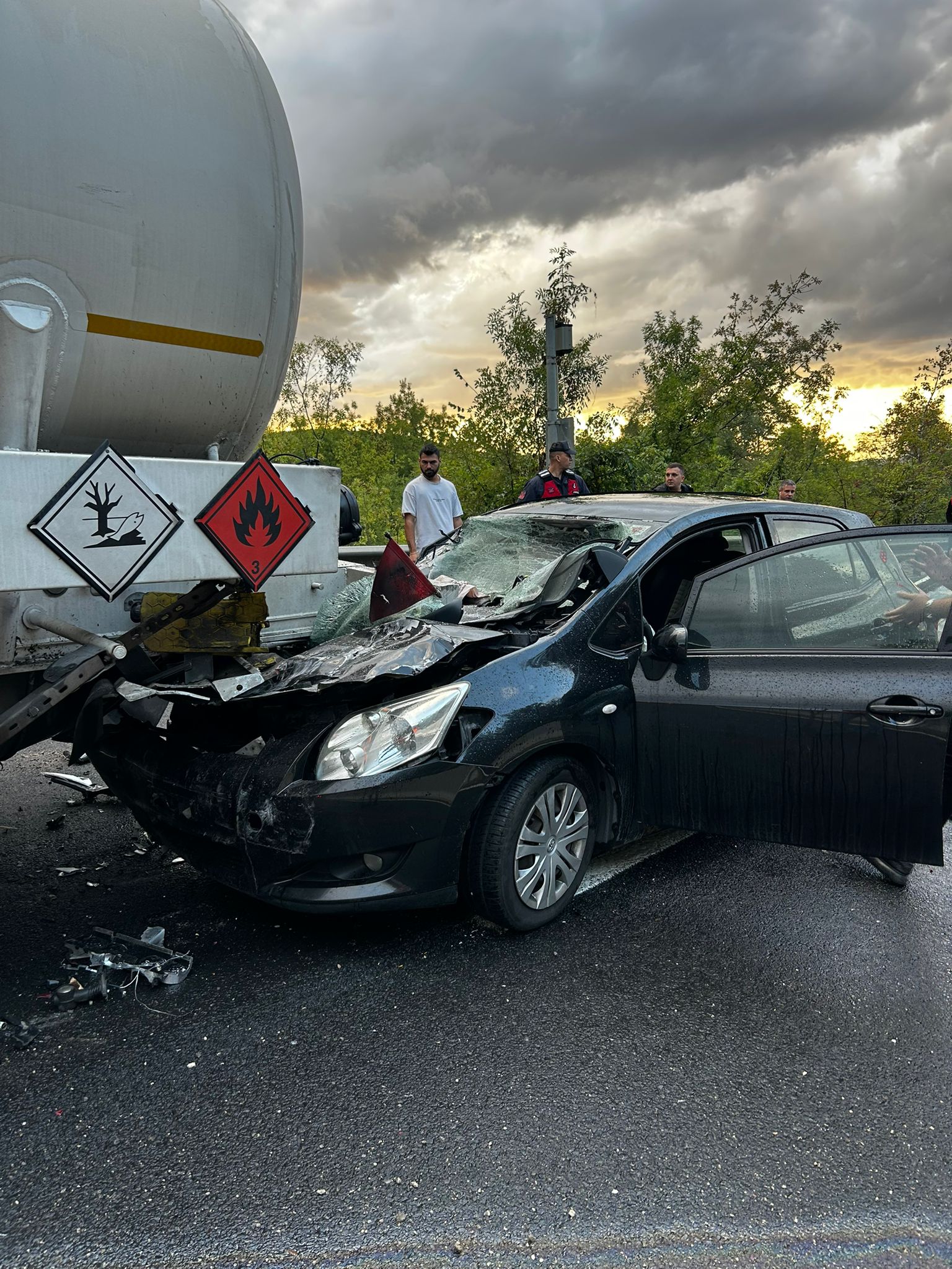 Kazada dorsenin altına giren otomobilin sürücüsü Z.A. yaralandı.