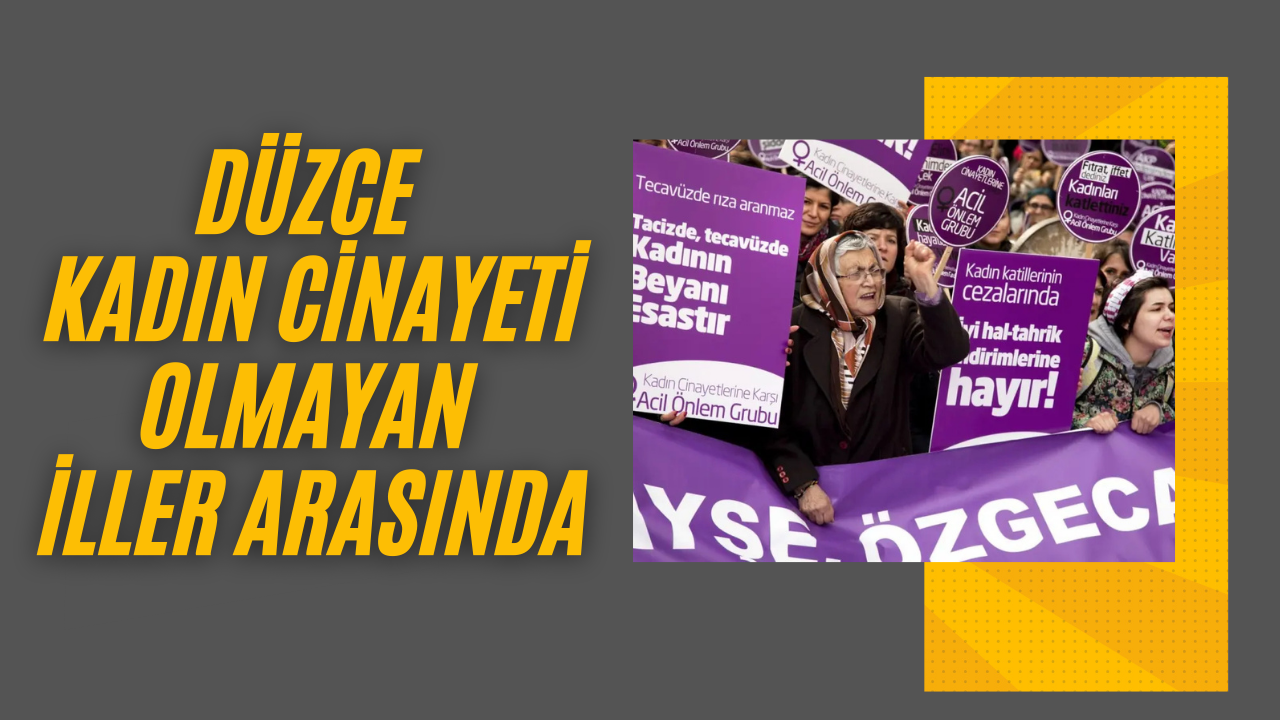 Bianet tarafından kamuoyuyla paylaşılan erkek şiddeti araştırmasında, Düzce 2025 yılı boyunca basında kadına yönelik cinayet vakalarının bulunmadığı iller arasında yer aldı. Listede Düzce’nin yanı sıra Ardahan, Artvin, Batman, Bayburt, Bingöl, Bitlis, Burdur, Erzincan, Gümüşhane, Hakkari, Kilis, Nevşehir, Niğde, Ordu, Rize, Sinop, Sivas ve Tunceli de bulunuyor.