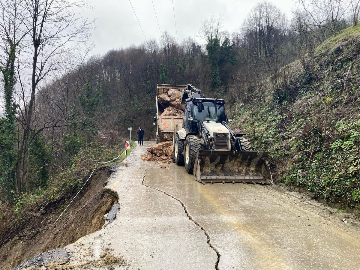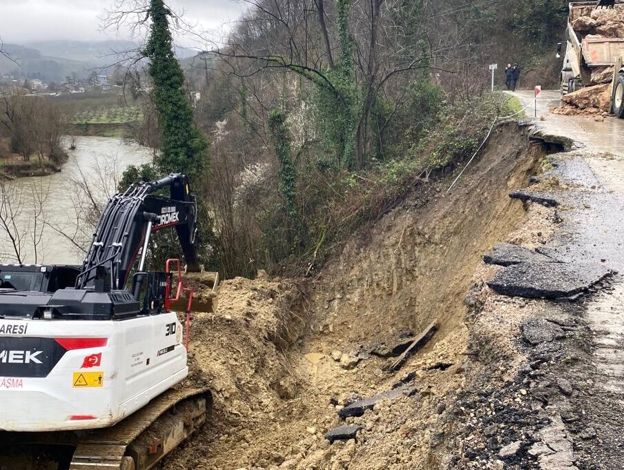Düzce’nin Cumayeri ilçesine bağlı 3 köyü birbirine bağlayan grup yolunda meydana gelen heyelan sonrası bölgede çalışmalar devam ediyor.