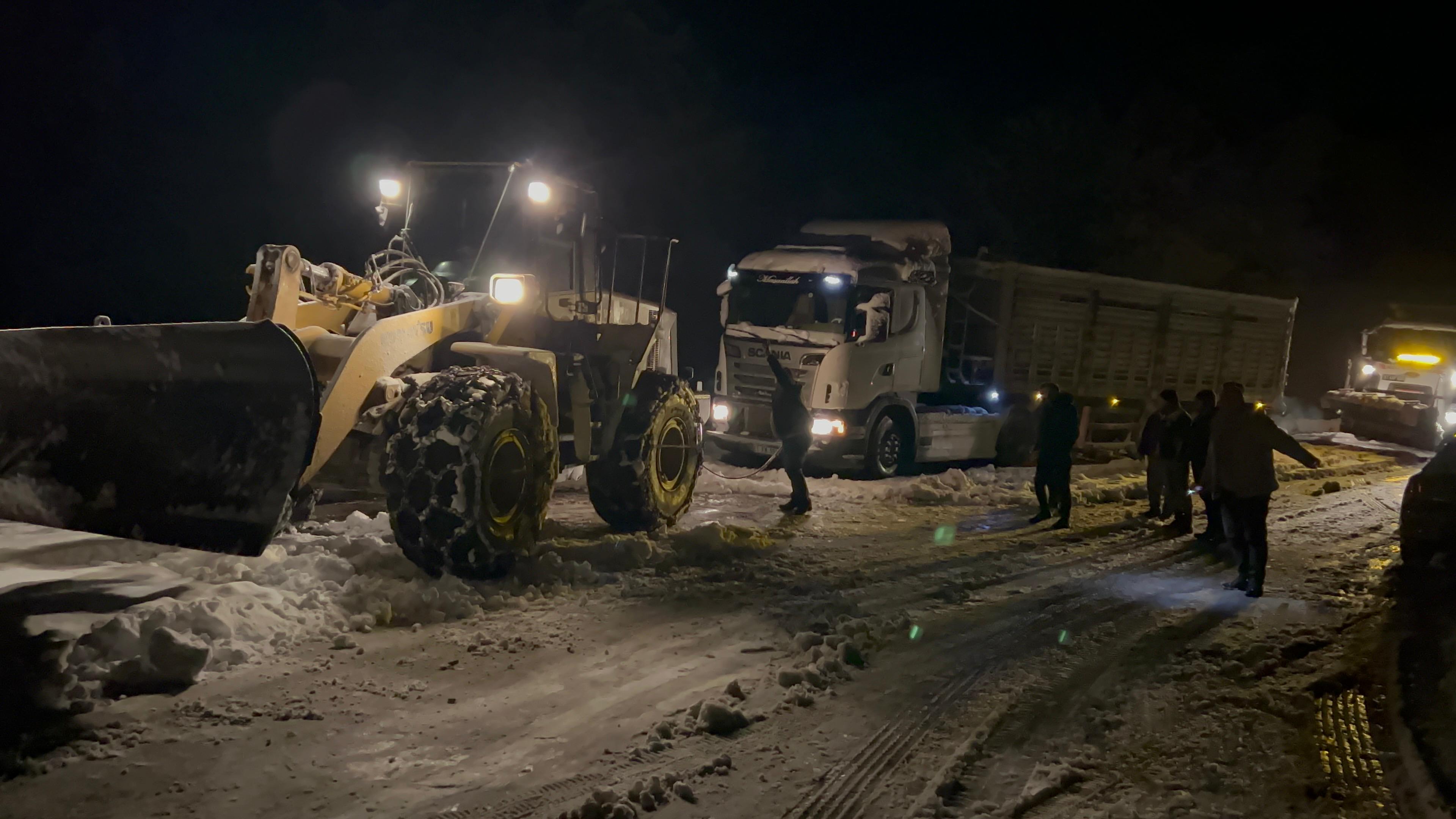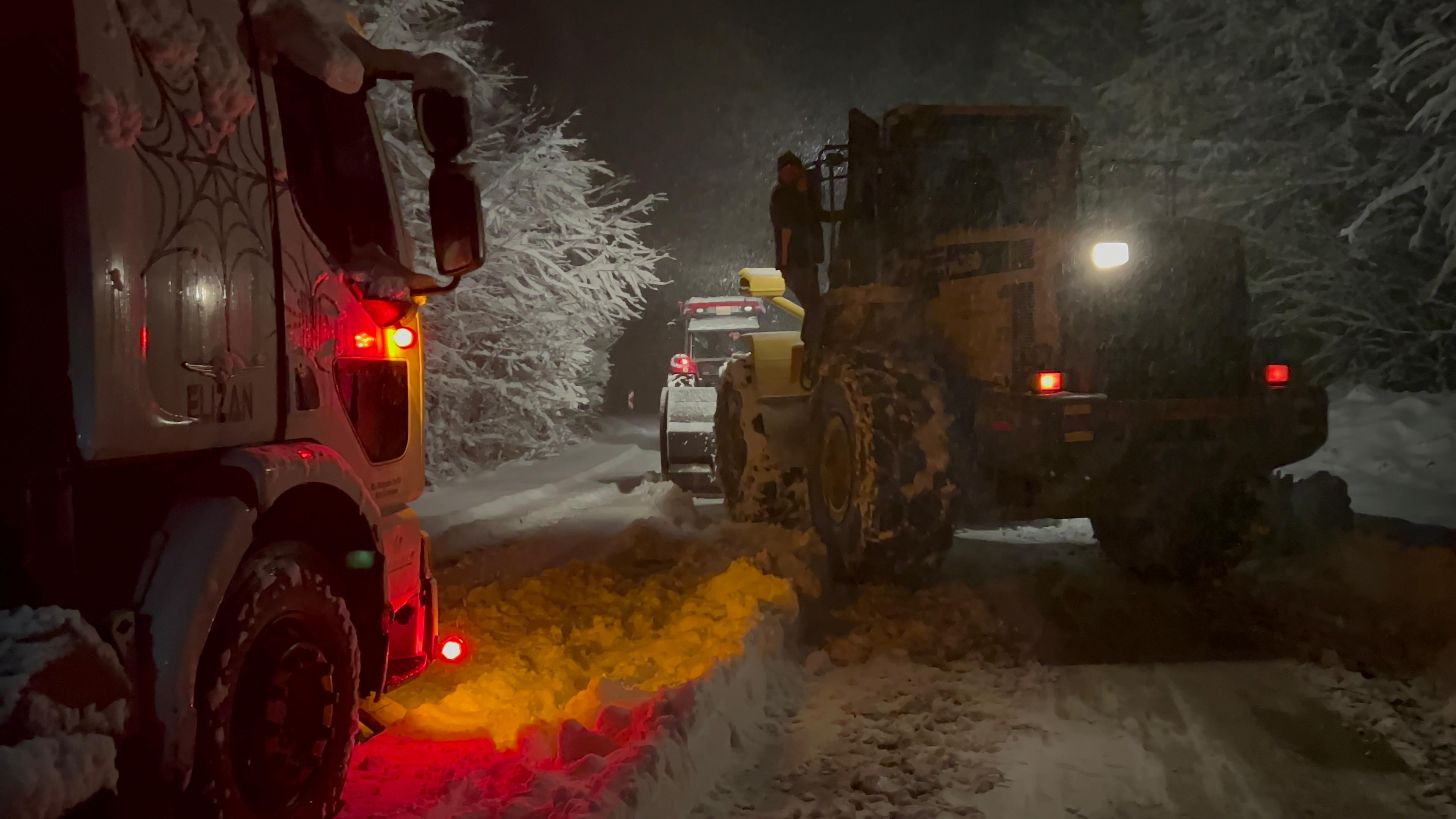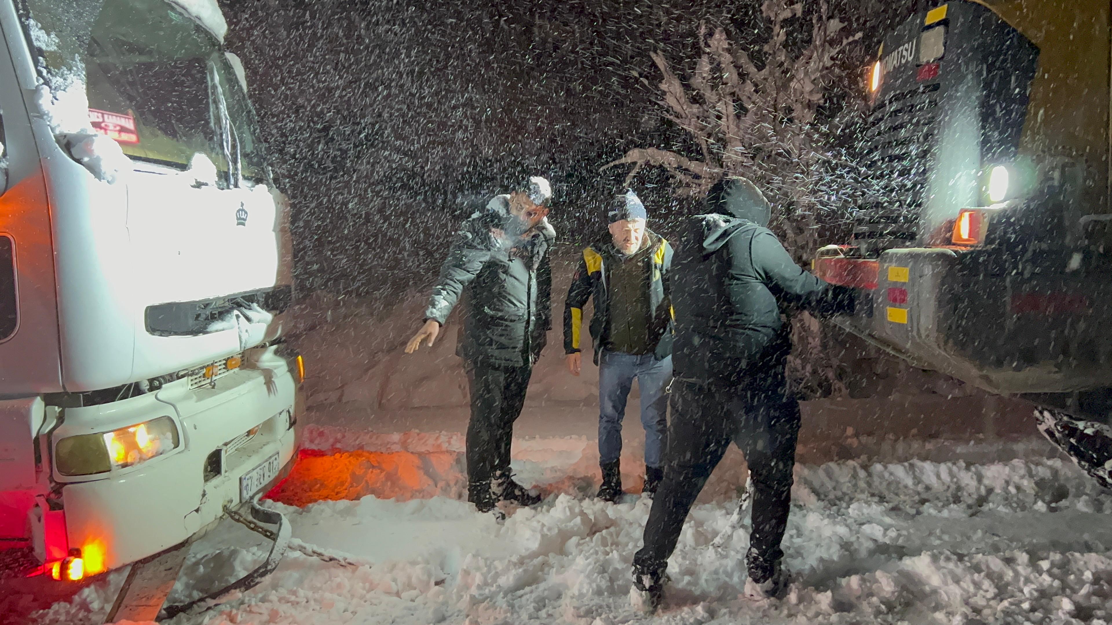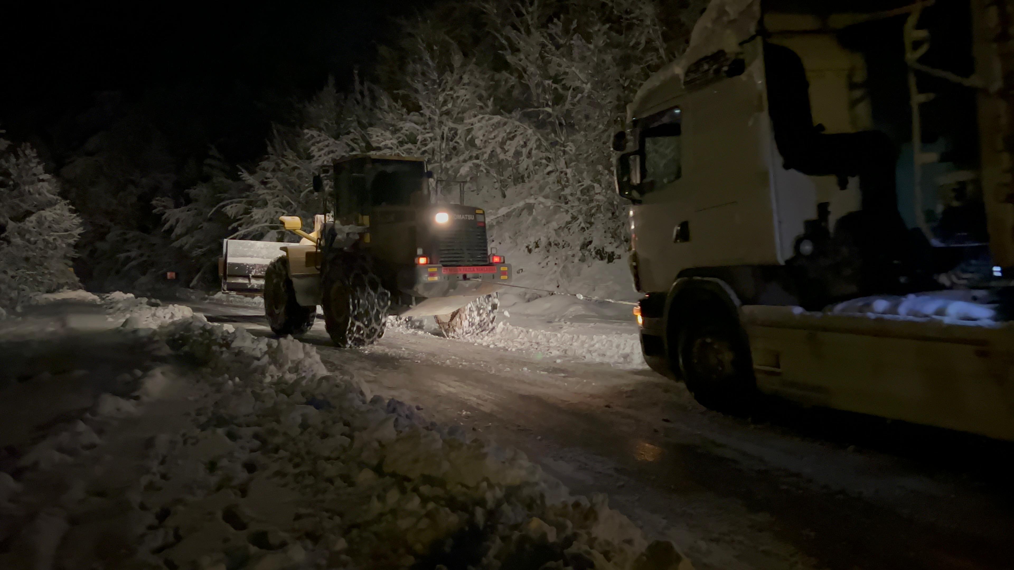 Araç takip cihazları ile mahsur kalan araçların yerlerini belirleyen İl Özel İdaresi ekipleri, kar küreme çalışması yaparak 5 sürücüye ulaştı.