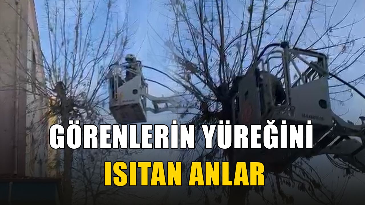 Bunun üzerine Düzce Belediyesi İtfaiye ekiplerinden yardım istendi. Bölgeye ulaşan ekipler, itfaiye merdiveni aracıyla ağacın üst kısmında bulunan kediye ulaşmak için kurtarma çalışması başlattı.