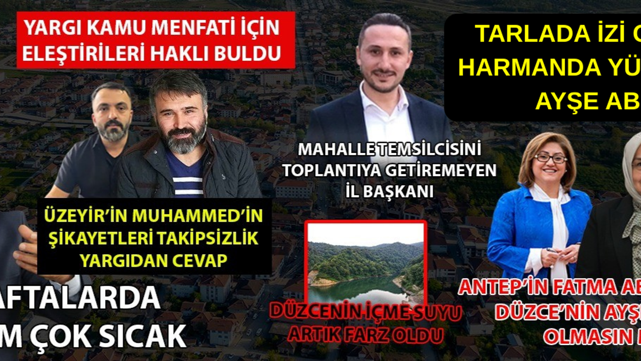 Ama şunu da görmek lazım: Düzce’de siyasetin ve bürokrasinin ağırlığı şu an Belediye Başkanı Faruk Özlü’de. İnsanlar bütün dertlerine oradan çözüm arıyor. Bir de Ercan Öztürk var, fakat son zamanlarda Ayşe Hanım sahaya indi. Şimdi Düzce’de susuz yaz dedik ya perşembenin gelişi çarşambadan belli olur.
