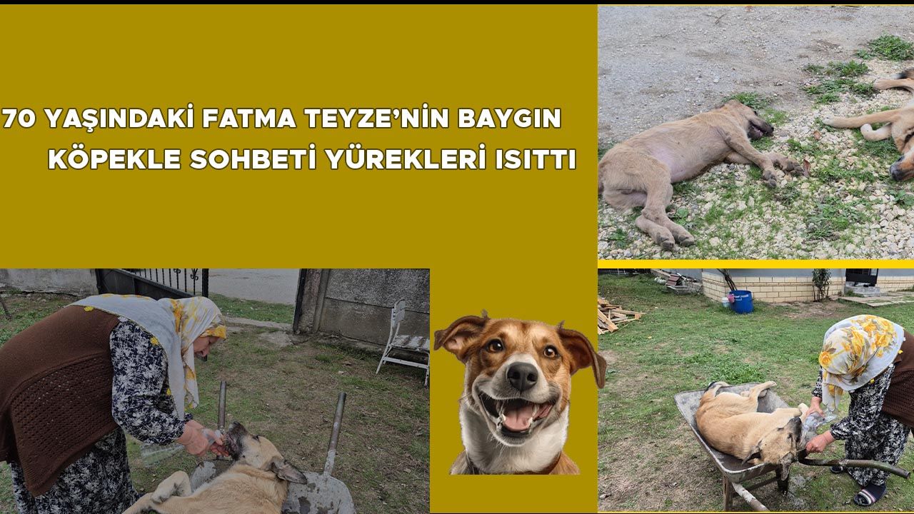Fatma Ceylan daha sonra Özel İdare ekiplerince bayıltılan köpeğe elleriyle su vererek onu kendine getirmeye çalıştı.