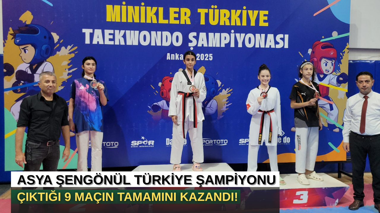 Ankara’da, 5 binden fazla sporcunun katılımıyla gerçekleştirilen Minikler Türkiye Taekwondo Şampiyonası’nda, ilimiz sporcusu Asya Şengönül, antrenörü Hakan Şengönül eşliğinde çıktığı 9 maçın tamamını kazanarak Türkiye Şampiyonu oldu.