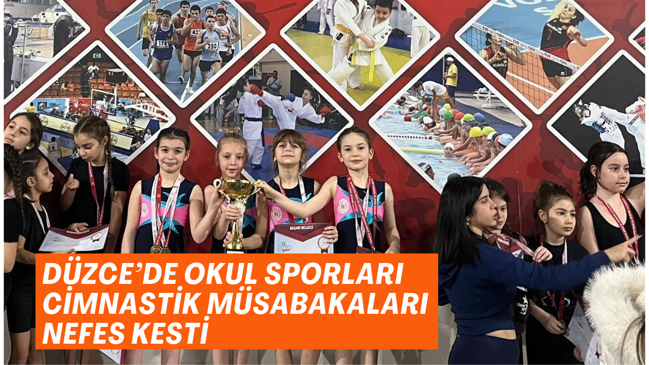 Düzce’de Okul Sporları gençler, yıldızlar, küçükler ve minikler cimnastik müsabakaları birbirinden renkli görüntülere sahne oldu. Sporcular şampiyon olmak için kıyasıya mücadele etti.