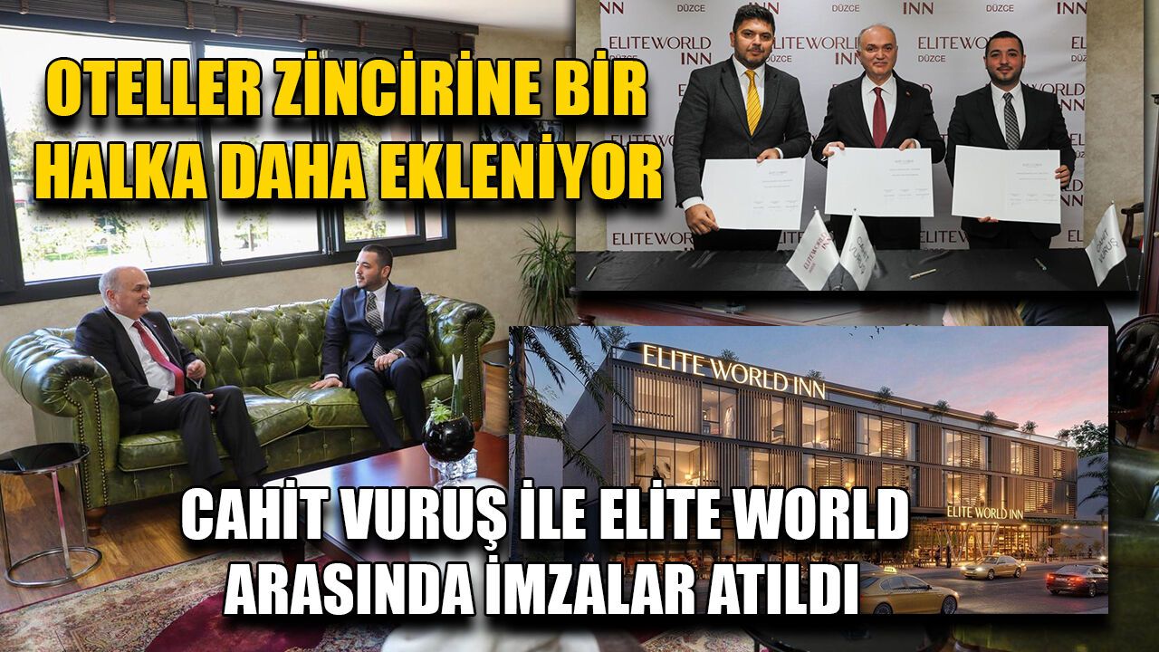 Düzceli iş insanı Cahit Vuruş tarafından hayata geçirilecek ‘Elite World Inn Düzce Otel’in sözleşmesi, Düzce Belediye Başkanı Dr. Faruk Özlü’nün de katıldığı tören ile imzalandı. Yatırımdan duyduğu memnuniyeti dile getiren Başkan Özlü, “Dünyada marka olmuş, zincir olmuş otellerden birisinin daha Düzce’ye bir otel yatırımı yapması gerçekten Düzce’ye sınıf atlatacak olan bir girişimdir” dedi.