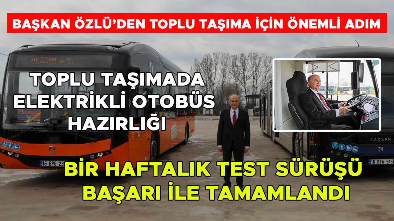 Başkan Özlü, daha sonra beraberinde Ulaşım A.Ş. Genel Müdürü Muhsin Yavuz ve şirket yöneticileri ile birlikte elektrikli otobüs hakkında bilgi alarak, kendisi de direksiyona geçerek otobüsü kullandı.