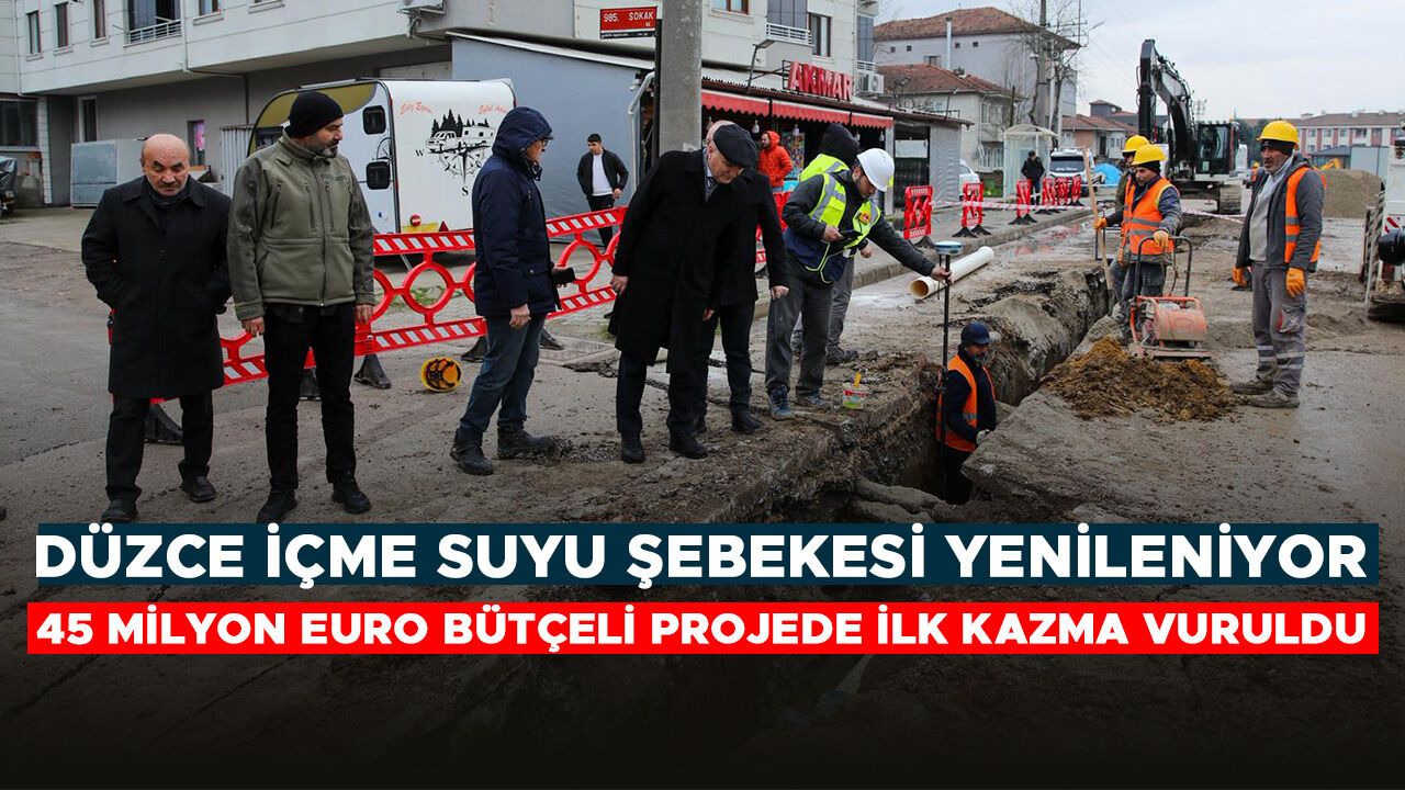 Düzce’de içme suyu sorununa köklü çözüm sunacak olan yatırımlardan bir tanesi daha hayata geçiyor. Düzce Belediye Başkanı Dr. Faruk Özlü’nün vaatleri arasında yer alan 45 milyon Euro bütçeli şehir şebekesi yenileme projesi başladı, ilk kazma Aziziye Mahallesi’nde vuruldu. Çalışmaları yerinde inceleyen Başkan Özlü, projenin 22 ila 30 ay içerisinde tamamlanmasının hedeflendiğini açıkladı.