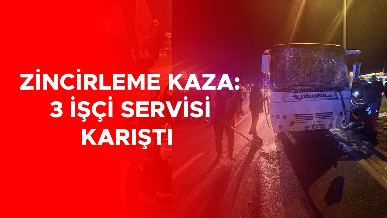 Organize Sanayi Bölgesi'nden kent merkezi istikametine giden A.T. yönetimindeki 14 S 0232 plakalı işçi servisi midibüsü, Köroğlu Mahallesi mevkisinde önünde seyreden S.T. idaresindeki 14 S 0224 plakalı midibüse, bu araç da öndeki A.S'nin kullandığı 14 S 238 plakalı midibüse çarptı.