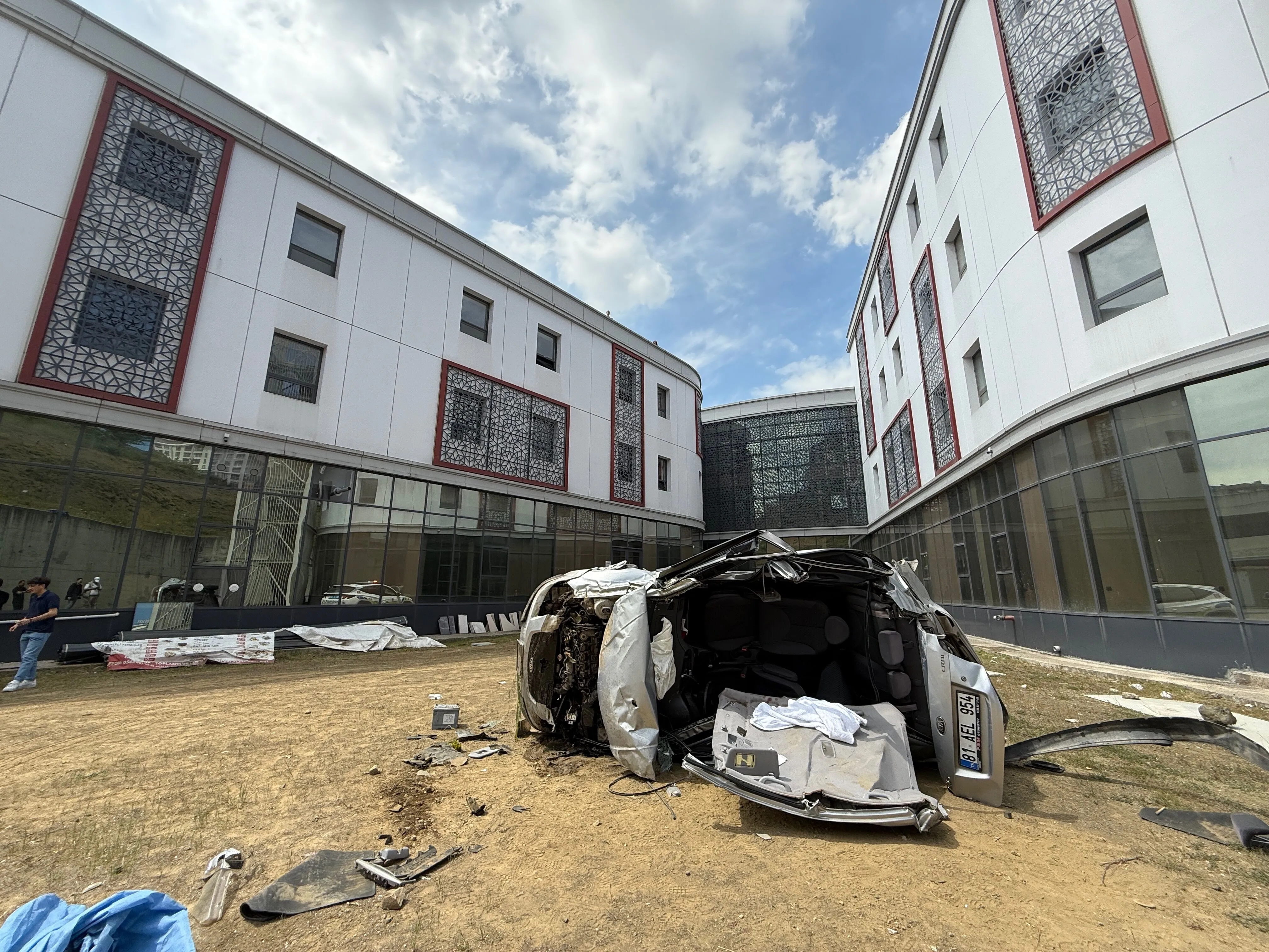 14 Mayıs 2025 tarihinde Mahmut S.D idaresindeki otomobil direksiyon hakimiyetini kaybetmesi sonucu şarampole devrilmiş, Düzce Teknopark binasının arka kısmındaki istinat duvarını aşan otomobil, otopark bölümüne düşmüştü. Ters dönen otomobilde sürücü ile yanındaki Cengizhan O. sıkıştı. Ekiplerce bulundukları yerden çıkarılarak hastaneye kaldırılan yaralılar tedavi altına alınmıştı.