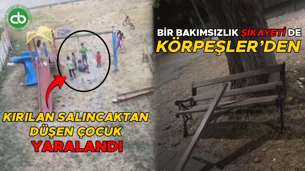 Çocuk oyun parkları konusunda bir şikayet de Düzce merkeze bağlı Körpeşler Mahallesi’nden geldi. Bir site arkasında bulunan çocuk parkında oturma alanlarının ve yine park içindeki çeşmenin kırık-dökük halini fotoğraflayarak ihbar hattına gönderen mahalle sakini, uzun süredir bu halde olan parkta Düzce Belediyesi tarafından gerekli bakım ve onarım çalışmalarının yapılmasını talep etti.