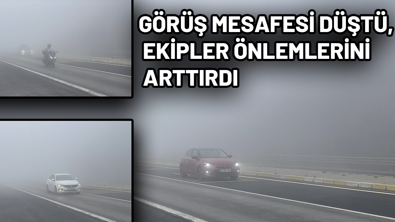 Görüş mesafesinin 25 metreye kadar düştüğü bölgede görev yapan Karayolları ve trafik ekipleri, sürücülerden yakın takip, hatalı sollama ve aşırı hız yapmamalarını istedi.