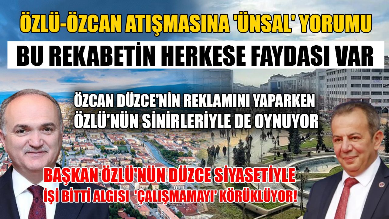 Ünsal, Bolu Belediye Başkanı Tanju Özcan’ın, Düzce Belediye Başkanı Faruk Özlü’nün sinirleriyle oynadığını kaydederek, “Aslında Tanju Bey, Faruk Bey'in sinirleriyle oynuyor. İşin özünde bu var. Dokunuyor. Herkes faydalı. Yani bu atışmanın, bu kapışmanın, bu rekabetin herkese faydası var ama bize ne faydası var? Düzce'ye faydası ne?” diye konuştu.