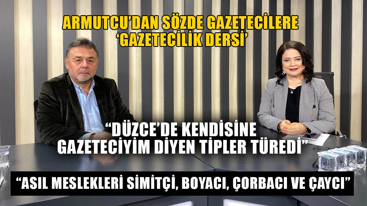 Kendilerine “’Gazeteciyim” diyenlere programda adeta gazetecilik dersi veren Armutçu, “Ben Düzce’ye geldiğimde 2 tane gazete vardı ve 3’üncü gazete olan Düzce Manşet Gazetesi’ni biz kurduk. Daha sonra da gazeteler arttı. Gelinen noktada baktığınız zaman Resmi İlan alan 6 tane gazete var. Bunun dışında ciddi bir kurum olan Öncü TV ve Düzce TV var. Bir de haftalık çıkan güçlü Burası Düzce ve Pusula gibi gazeteler ve ajanslar var. Bu yüzden biz Düzce’de gazeteciliğin çok ileriye gittiğini söyleyemiyoruz. Evet basın kuruluşlarının sayısı arttı, ama meslek kalitesi açısından biraz geriye gittik. Bunu nereden biliyoruz; bunu yapılan haberlerden biliyoruz, bunu işte bazı programlardan görebiliyoruz. Biraz eğitimsizlik var bu konuda. Hani mektepli ve alaylı ayrımı yapmak istemiyorum, ama belediyenin bir programına gittik en son, belediye başkanının konuşması bittiği zaman alkışladı onu. Hiçbir gazeteci, hiçbir basın mensubu, hiçbir siyasetçiyi alkışlamaz. Çünkü gazeteciler onların çalışanı veya memuru değildir. Ama maalesef bakıyoruz, ben bizzat şahit oldum bu yüzden kalite açısından ileriye gidemedik şu an” ifadelerini kullandı.
