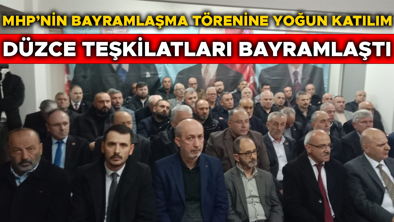 MHP Düzce İl Başkanlığı’nın geleneksel bayramlaşma törenine İl Başkanı İlhami Caboğlu, Cumayeri Belediye Başkanı Mustafa Koloğlu, Gölyaka Belediye Başkanı Muzaffer Coşkun, Kaynaşlı Belediye Başkanı Fatih Ocak, MHP önceki dönem Düzce Milletvekili Ümit Yılmaz, İstanbul Düzceliler Derneği Başkanı Mustafa Sönmezoğlu, Ticaret Borsası Yönetim Kurulu Üyesi Yaşar Çengel, Ülkü Ocakları Başkanı Oğuzhan Coşkun, Ülkü Ocakları mensupları, parti yöneticileri ve partililer katıldı.