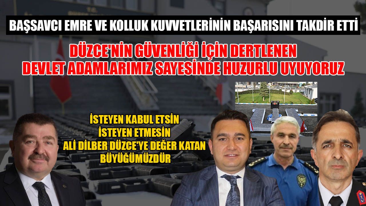 “Sayın Başsavcımız hakikaten Düzce’de başsavcılık makamında, Allah ne kadar nasip eder bilmiyoruz, ama gönüllere dokunan, gerçekten insanlara adaleti sağlama adına dert edinen, dertlenen bir insan. Geçtiğimiz günlerde bir bilanço çıktı Düzce’de suç ve suçlulara karşı yapılan çalışmalarla ilgili. Tabii burada emniyetimizin, jandarmamızın, savcılığımızın, devletimizin bizim huzur ve sükûnetimizi sağlamak adına, bize yaşam kalitesini daha iyi noktalara çekmek adına gayretleri takdire şayan. Bu ve buna benzer operasyonlar insanların toplumda daha huzurlu, daha güvenli yaşamasına sebebiyet veriyor. Bu güzel bir gelişme. Birçok konuda hiçbir şey eskisi gibi olmuyor. Özellikle Sayın Başsavcının Düzce’ye kazandırdığı o adliye, hani “insanı yaşat ki devlet yaşasın” mantığının ortaya çıkan somut bir göstergesi. Yani insanlar oraya gittiği zaman kolaylaştırılıyor, zorlaştırılmıyor; yapı ve pozisyon itibariyle. Netice itibariyle emeği geçen herkese teşekkür ediyoruz. Memlekete, millete, devlete hayırlara vesile olsun.”
