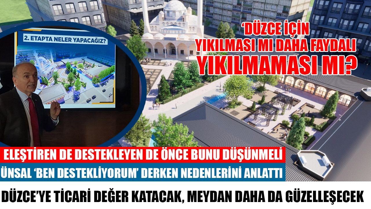 Düzce Belediye binasının yıkılması ile birlikte Cedidiye Meydanı’nda yeni ticari alanların açılacağını kaydeden Ünsal, şu ifadelere yer verdi: