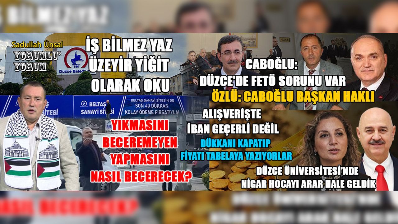 Yani Düzce’de şu anda en eski, en deneyimli siyasetçi aslında Caboğlu. Demek ki bıçak kemiğe dayanmış ki ve bu konuyla ilgili de geçtiğimiz günlerde valilik makamına bazı iş insanları gidip haksız rekabetten dolayı duydukları sıkıntıdan bahsediyorlar. Yani piyasalarda haksız rekabetler var. “Biz ticaretle, rekabetle değil FETÖ ile mücadele ediyoruz.” noktasına kadar geldi. Artık bu iş herkeste, her şeyde, bütün Düzce’deki dimağlara oturdu. Ha ne olur? Devlet “ben bunu yapıyorum, şunu yapıyorum, şöyle mi böyle mi” demez. Devlet gereğini yapar ama ne zaman, nasıl yapar, onu da devlet bilir. Biz bilemeyiz.