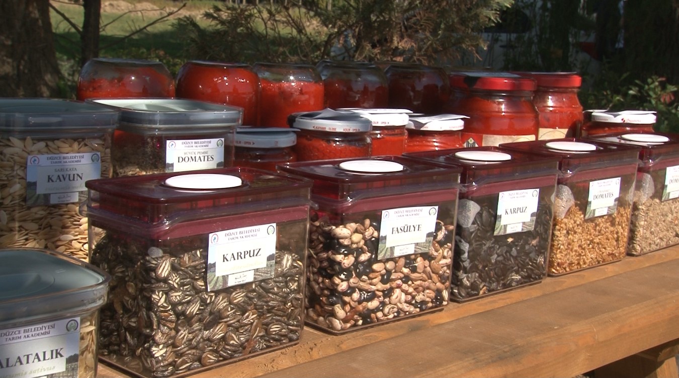 Düzce Belediyesi Tarım Akademisi bulunduğu alanda domates çeşitleri, biber çeşitleri, kudret narı, patlıcan çeşitleri, kabak, salatalık gibi mahsuller doğal ortamda doğal gübreler kullanılarak organik olarak yetiştirilirken tohumları ise alınarak yeniden toprakla buluyor.