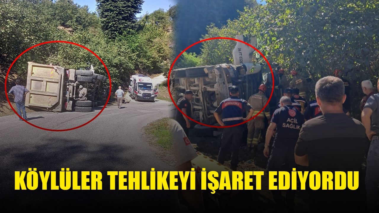 Çınardüzü köyünde, köy sakinlerinin de haftalardır “tehlike saçıyor” diyerek tepki gösterdiği yolda korkulan oldu. Kontrolden çıkan kamyon şarampole devrildi.