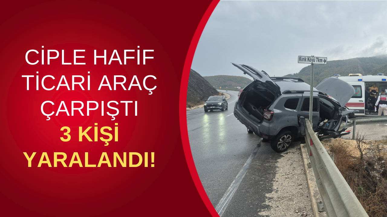 Düzce'nin Yığılca ilçesinde ciple hafif ticari aracın çarpışması sonucu 3 kişi yaralandı.