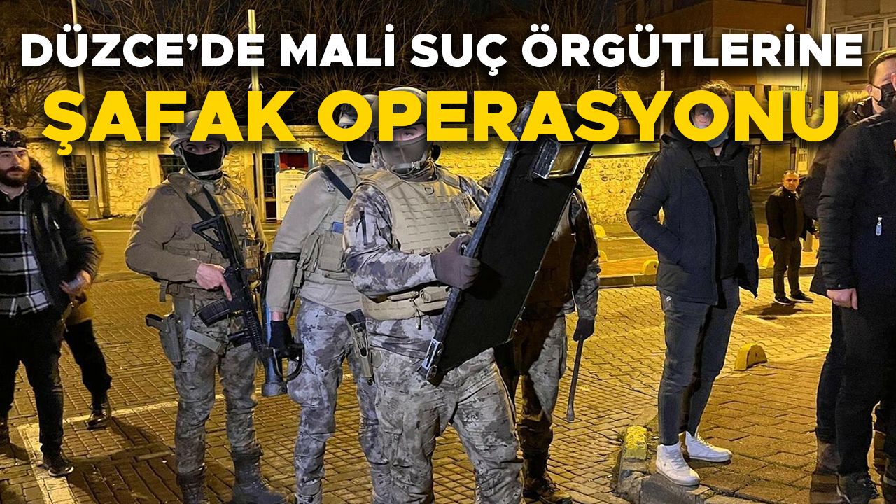 Aralarında Düzce’nin de bulunduğu 49 ilde mali suç örgütlerine yönelik operasyon düzenlendi. Operasyonların Düzce ayağında polis ve jandarma ekipleri, belirlenen adreslere eş zamanlı operasyonlar düzenlendi. Operasyonlarda gözaltına alınan şahıslar, işlemleri için Düzce İl Emniyet Müdürlüğü ve Düzce İl Jandarma Komutanlığı’na götürüldü.