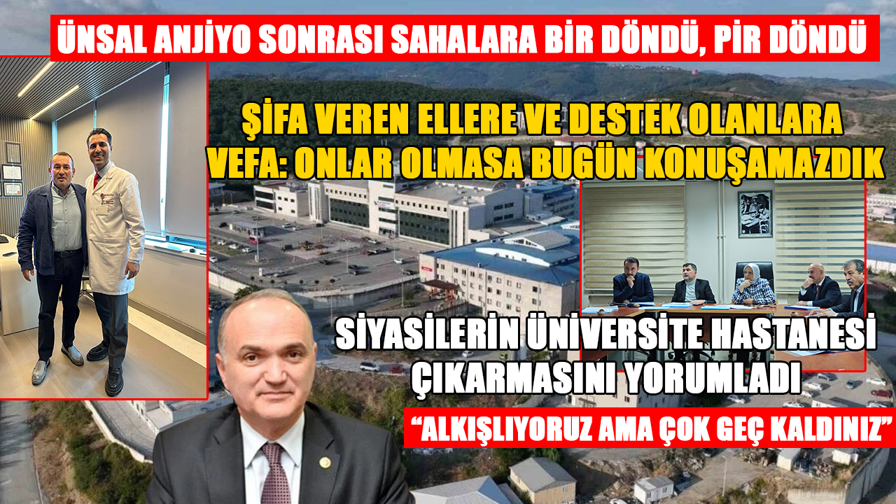 Geçirdiği kalp rahatsızlığı nedeniyle anjiyo olan ve bu süreçte ‘Yorumlu-yorum’ programına mecburi bir ara veren Öncü TV Yönetim Kurulu Başkanvekili Sadullah Ünsal, adeta sahalara bir döndü pir döndü. Düzce gündeminde önemli bir yer tutan Düzce Üniversitesi Hastanesi’ndeki sorunlar silsilesine yönelik geç de olsa siyaseten atılan adımları ‘umut vaat edici’ olarak değerlendiren Ünsal, “Bir yol haritası çiziliyor, detayını bilmiyoruz ama işin özünde şu var: Acil, hızlı, orta ve uzun vadeli planlar lazım.” dedi. İyileşme sürecinde kendisine rehberlik eden isimlere, şifa veren ellere ve yanında olan-olamayan herkese teşekkür etmeyi ihmal etmeyen Ünsal, sağlığın kıymetinin bilinmesini isterken, tedavi eden kurumların da Düzce’de sorunsuz işlemesinin gerekliliğine parmak bastı.