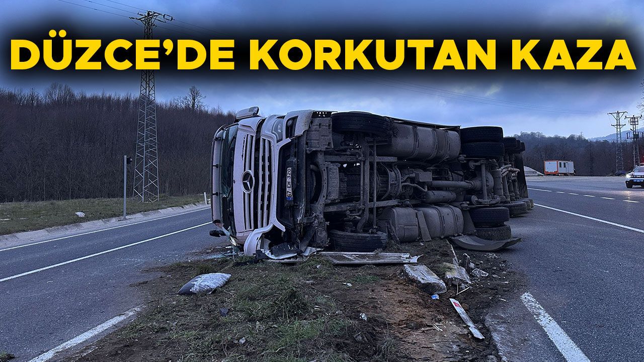Kaza D-655 Akçakoca Karayolunun Şifalı Su mevkisinde meydana geldi. Alınan bilgilere göre Düzce’den Akçakoca istikametine seyir halinde olan İ.A idaresindeki 67 EH 320 plakalı tır, sürücüsünün direksiyon hakimiyetini kaybetmesi sonucu, önce yol kenarındaki drenaj kanalına savruldu, ardından ise orta refüje çıkarak devrildi.