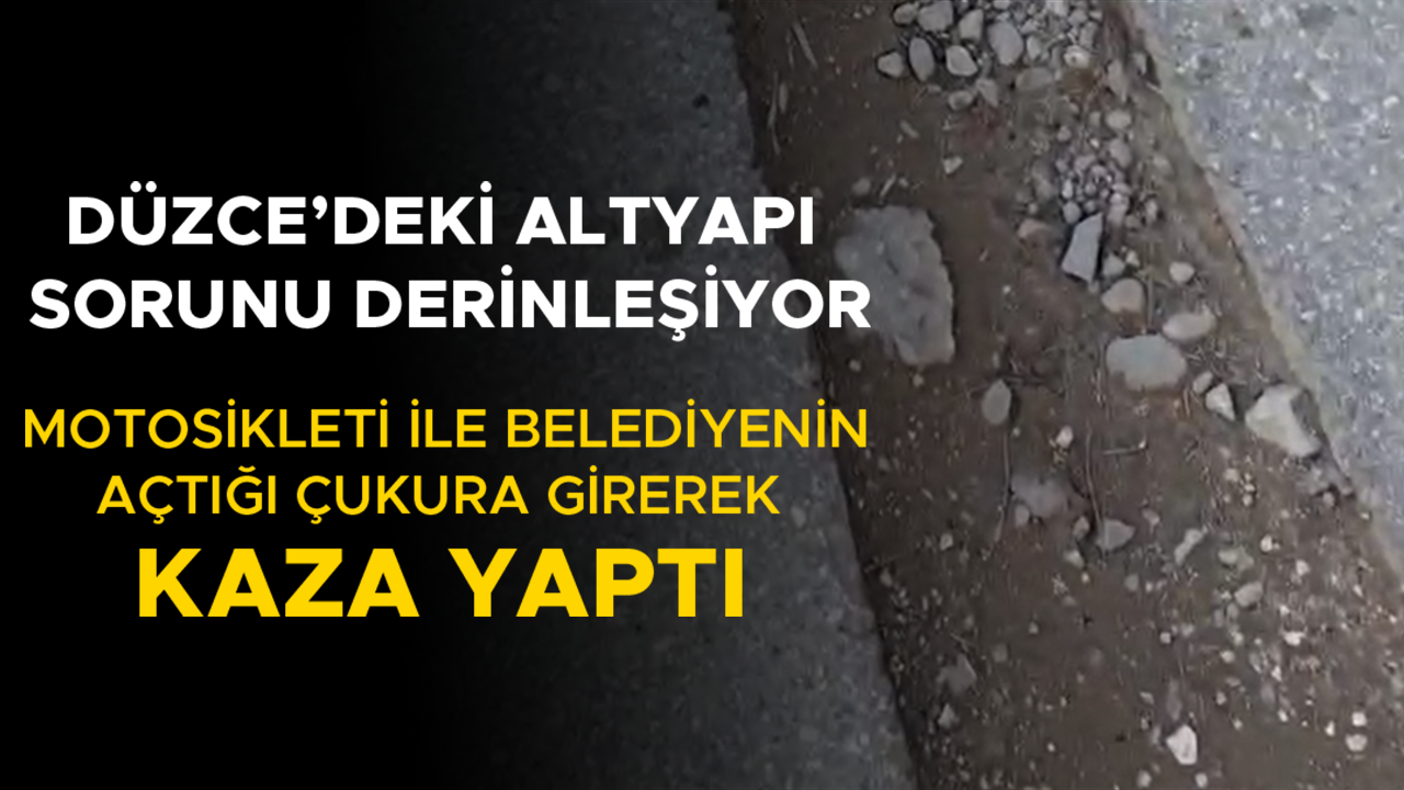 Düzce’de kent merkezinde altyapı sorunlarına yenileri eklenmeye devam ediyor. Bu kez ise altyapı sorununun ortaya çıktığı son adres Hamidiye Mahallesi oldu. İddiaya göre, bir vatandaş Belediye ekipleri tarafından yapılan çalışmaların ardından kapatılmayan çukura motosikleti ile girerek, kaza yaptı.