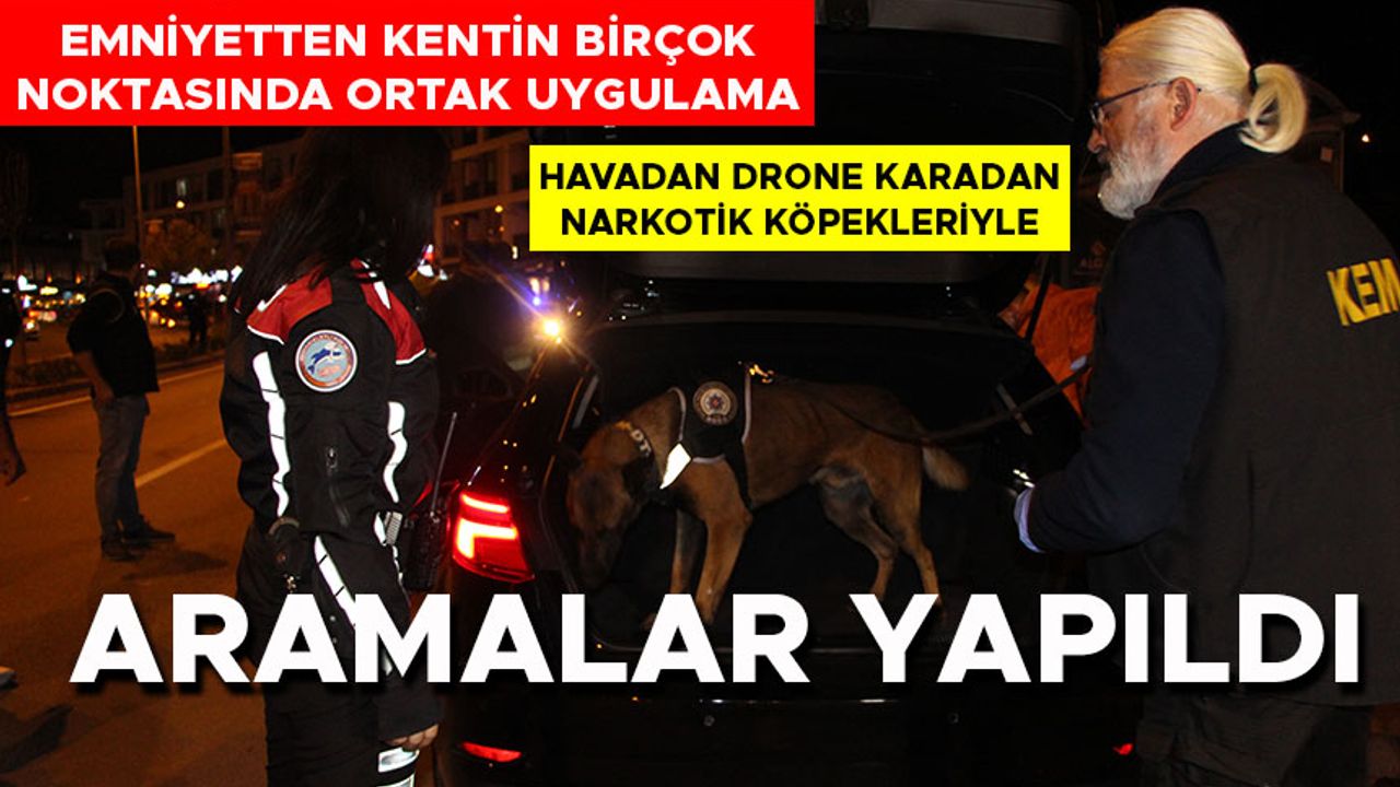 Drone Şube Ekipleri, denetim süresince İHA’larla havadan takibini sürdürürken, durdurulan araçlar narkotik köpeklerince didik arandı.