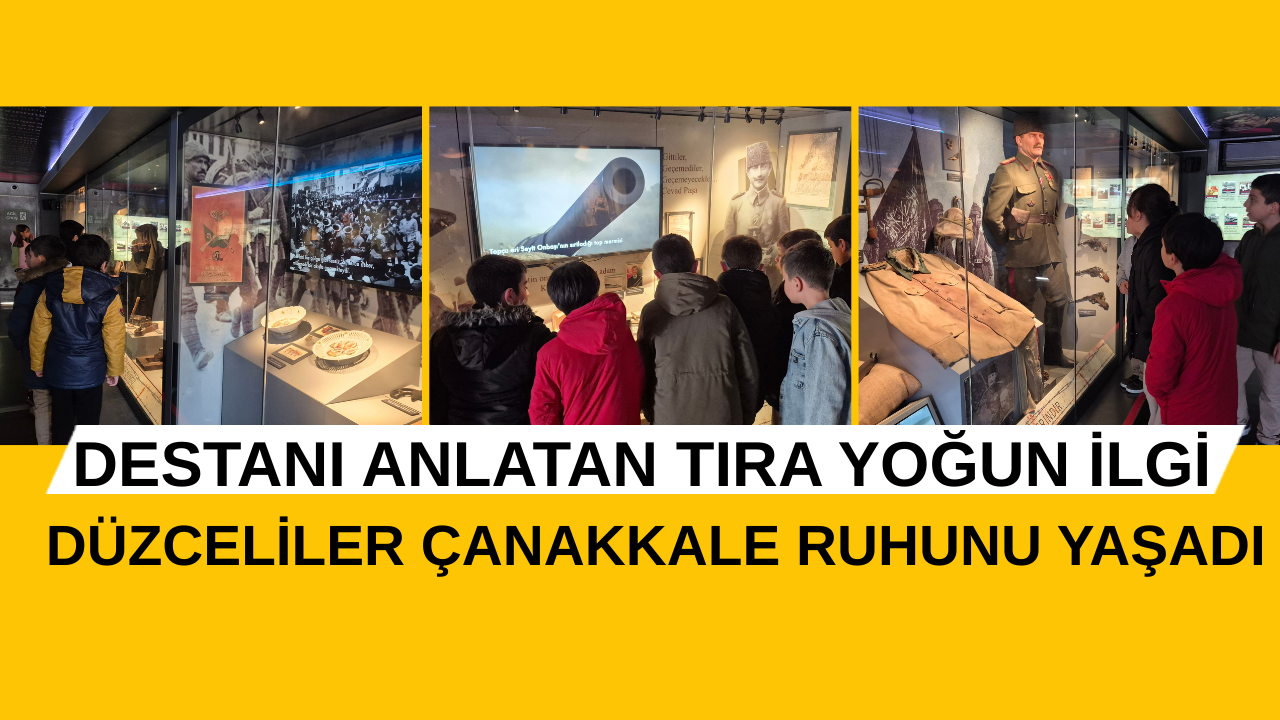 Dünya’nın en modern ordularına vatan toprağının verilemeyeceğini gösteren Çanakkale destanı tıra sığdı. Kahramanlığı anlatan tır 3 günlük program için Düzce’ye geldi. Kültür ve Turizm Bakanlığı tarafından yapılan Çanakkale Savaşları tırı Anıtpark Meydanı’nda vatandaşlardan, öğrencilerden yoğun ilgi gördü. Tırı gezen öğrenciler o destanı ve Çanakkale ruhunu tekrar yaşarken zaman zaman duygusal anlar da yaşadı.