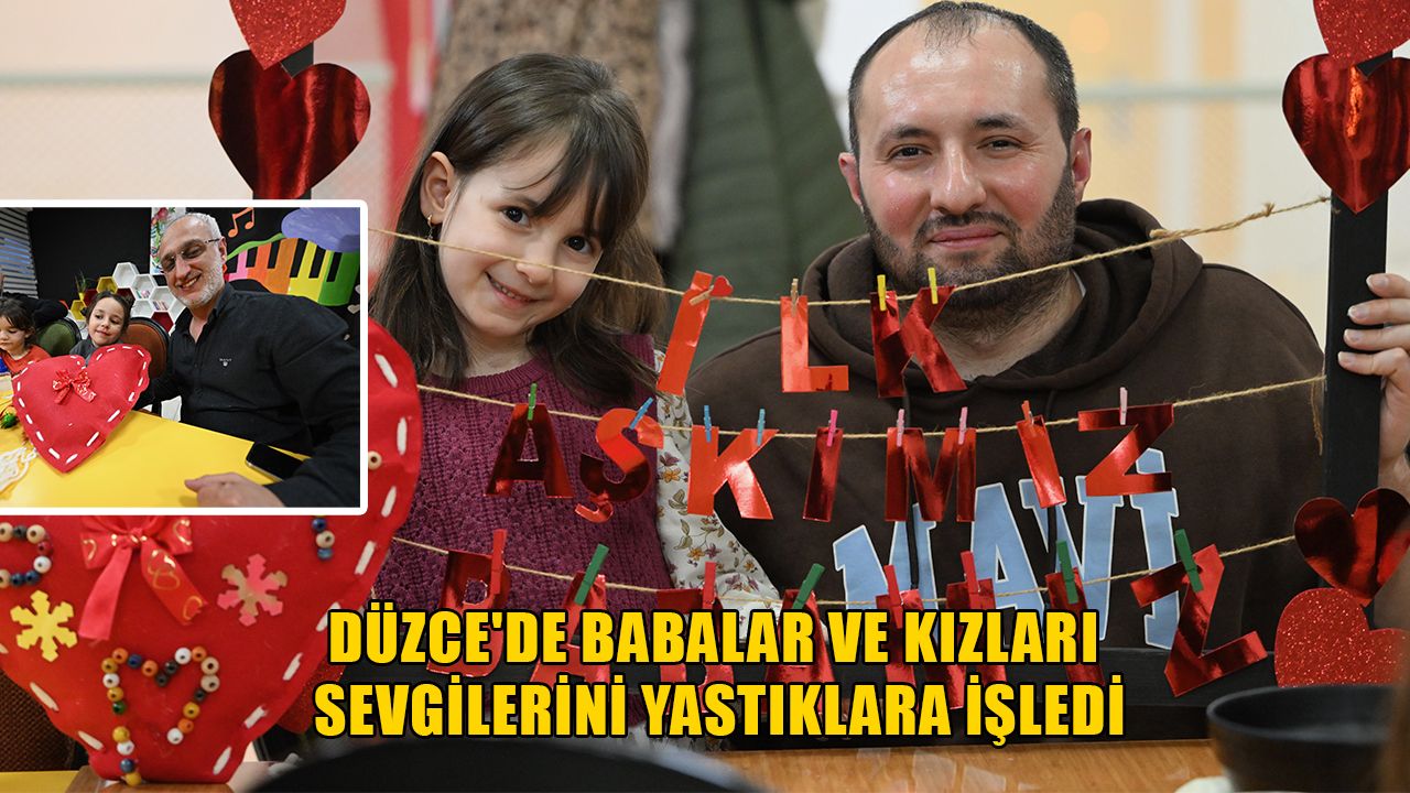 Düzce Belediyesi Çocuk Üniversitesi'nde düzenlenen etkinlikte 40 baba-kız, önceden hazırlanan yastık kılıflarını kap şeklinde keserek iğne iplikle dikti.