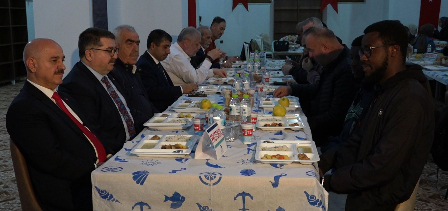 İftar programına katılanlar, akşam ezanı ile birlikte kurulan aynı sofrada iftarlarını açtılar.