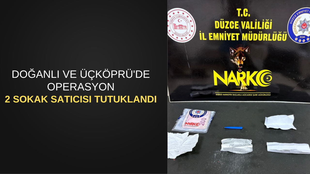 16 Ekim 2025 Perşembe günü Düzce Cumhuriyet Başsavcılığı koordinesinde Narkotik Suçlarla Mücadele Şube Müdürlüğü ekiplerince Doğanlı ve Üçköprü köylerinde 2 şüphelinin yakalanması için operasyon düzenlendi. Bir süredir teknik ve fiziki takipte olan 30 yaşındaki Ö.F.F. ile 30 yaşındaki B.Ç.'nin gözaltına alınması için adreslerine baskın yapıldı. Yapılan aramalarda, 5 parça halinde 5 gram metamfetamin maddesi ele geçirildi. Şüphelilerden Ö.F.F.'nin 9, B.Ç.'nin ise 20 suç kaydı olduğu tespit edildi.