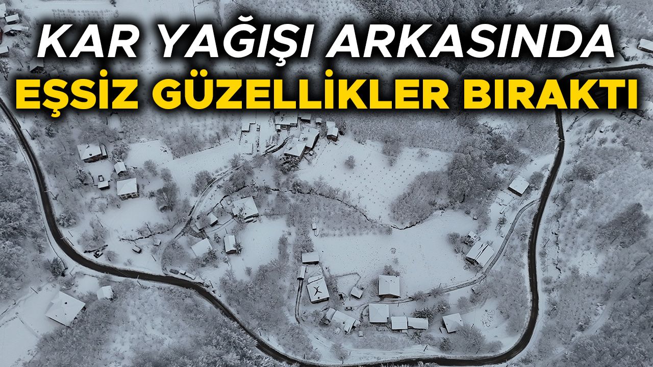 Düzce’nin Gölyaka ilçesinde yer alan Yanık Yaylası ve çevresindeki köyler de kar yağışının ardından eşsiz manzaraya büründü.