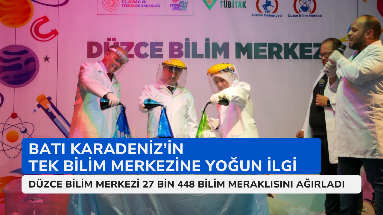 Düzce Belediye Başkanı Dr. Faruk Özlü’nün girişimleri ve TÜBİTAK’ın desteği ile şehre kazandırılan Batı Karadeniz bölgesinin tek Bilim Merkezi olma özelliğini taşıyan Düzce Bilim Merkezi, 2025 yılı içerisinde 48 bin 50 öğrenciyi bilimle buluştururken, 52 düzenekli sergi alanı, 6 farklı atölye sınıfı, kapalı ve açık atölye alanları ile bilime meraklı 27 bin 448 ziyaretçiyi de ağırladı.