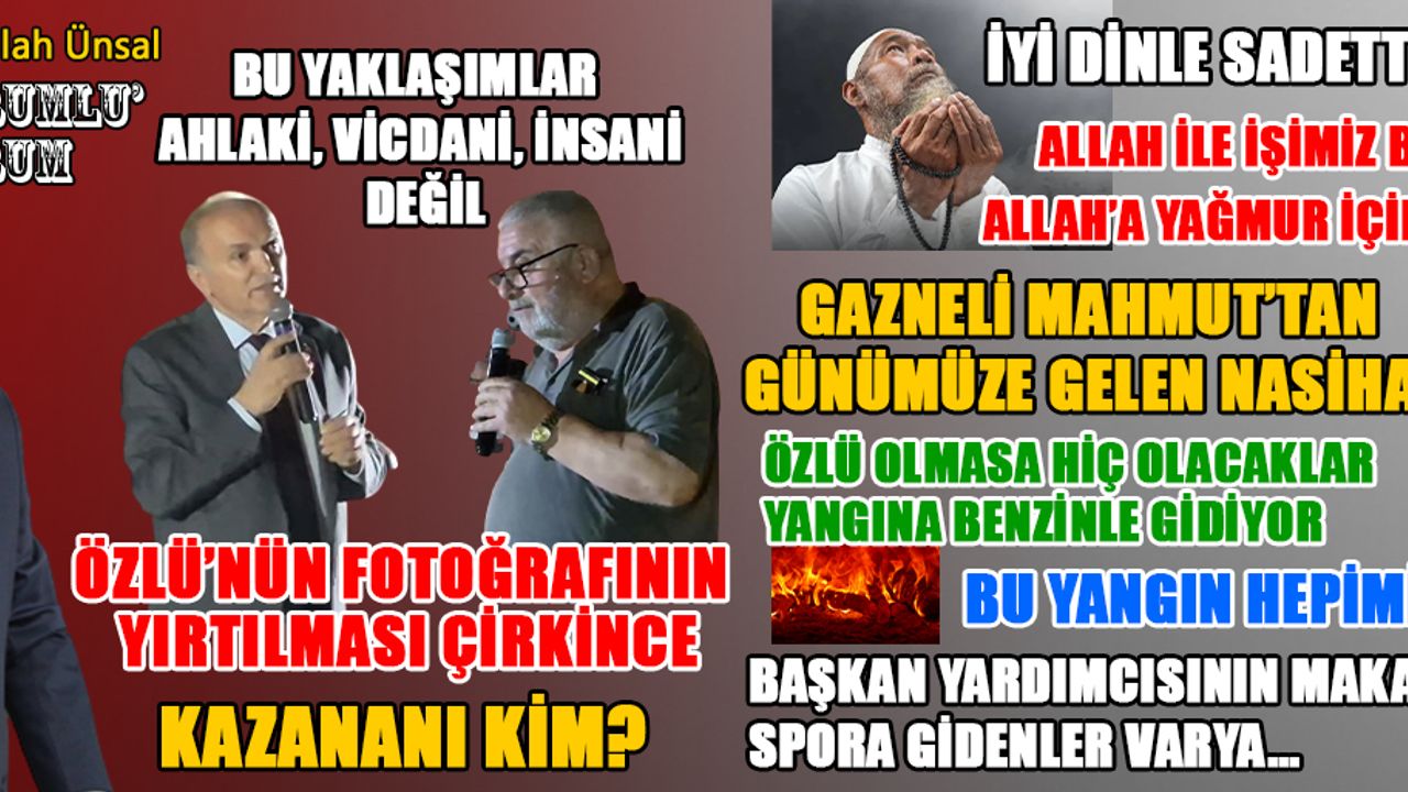Burada öküz altında buzağı arayan öküzlere diyorum: O çirkin saldırıyı, Faruk Bey’in resmini yırtan kişilere; ne elde ettiniz? Şimdi geldiğimiz nokta şu: Düzce’de fitneden, kaostan, gerilimden, entrikadan, filmden beslenen bir kitleden bahsediyorum ben. Ey Sadettin Kantar! İhmalden değil, suistimalden bahsediyorum. Burada ihmal yok. Önceki bahsettiğim konuda ihmal vardı. Burada suistimal var. İnsanların duyguları, doğruları, içtimai halleri istismar ediliyor. Her iki taraftan da… Düzce buna layık değil. Düzce bunu hak etmiyor. Ne Özlü hak ediyor, ne Beşyüz hak ediyor, ne Düzceliler hak ediyor.