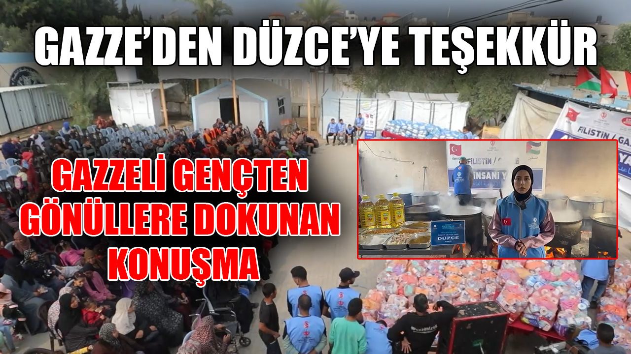 Türkiye’nin Gazze’ye umut taşıdığına değinen Gazzeli genç, zor günde yardıma koşan Düzce ve Türkiye Diyanet Vakfı Düzce Şubesi’ne teşekkür ederek, “Gazze’de iki yıldır tarifsiz acılar yaşanıyor. Evlerimiz yıkıldı ve sevdiklerimizi kaybettik. Çocuklarımız açlık, susuzluk ve hastalıklarla mücadele ediyor. Her gün kadın, çocuk, yaşlı demeden yüzlerce masum insan bombalar altında can veriyor. Zor günlerde duaları ve yardımları ile yanımızda ve bize umut olan Türkiye Diyanet Vakfı’na özellikle Düzce şubesine gönülden teşekkür ediyoruz. Savaşın ilk gününden bu yana sıcak yemek, ekmek ve içme suyu dağıtımları ile binler mazluma nefes oldular. Çadırlarda yıkıntıların arasında hayata tutunmaya çalışan kardeşlerimize umut taşıdınız.” ifadelerini kullandı.