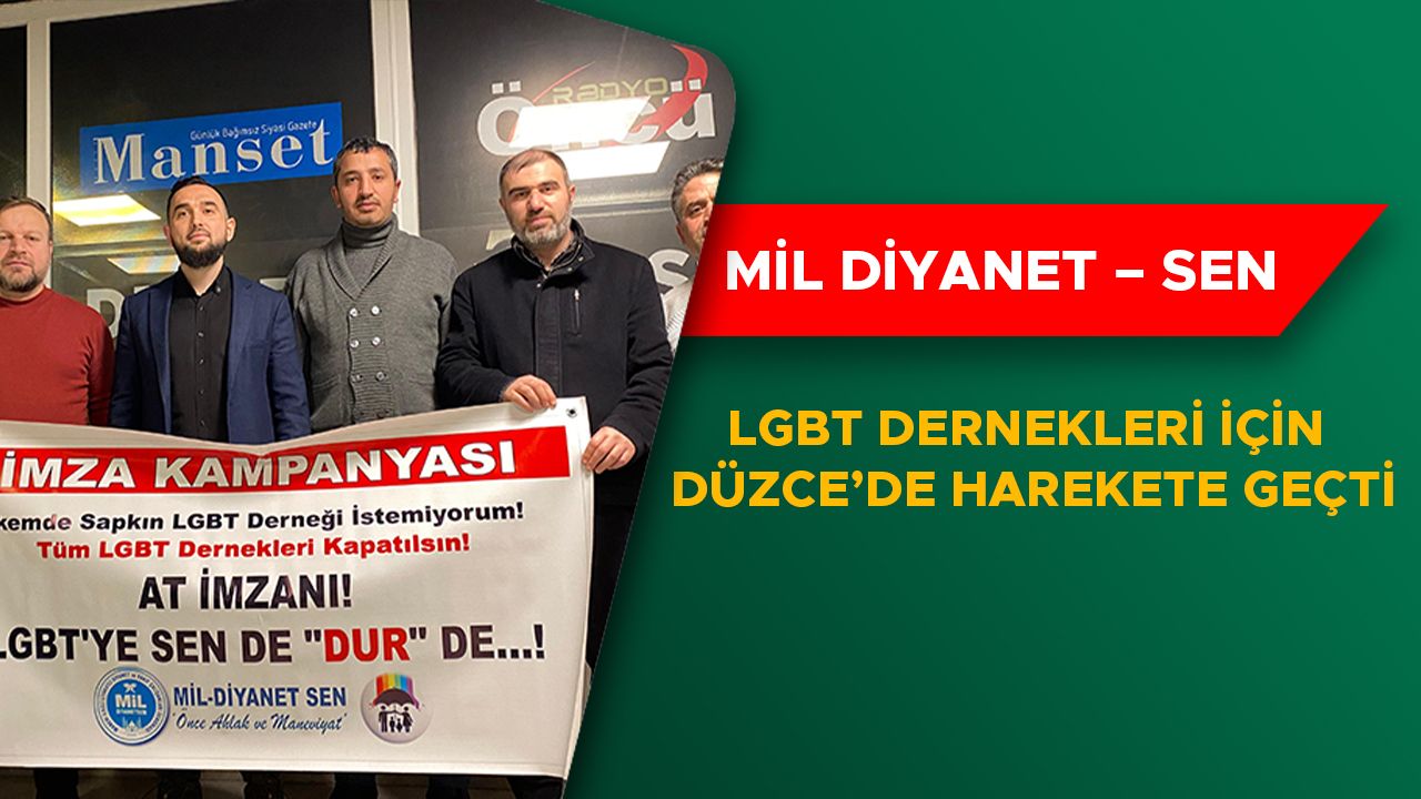 Ziyaret sırasında Sendikanın LGBT derneklerinin faaliyetlerinin durdurulması için Düzce’de başlatacakları imza kampanyası ile ilgili bilgi veren Mil Diyanet – Sen Düzce Şube Başkanı Fatih Çetin, “Toplumumuzun en büyük sıkıntılarından biri de, özellikle gençlerimizi zehirleyen ve neslimizi çürütmeye giden bir yapı olan LGBT gibi derneklerle karşı karşıyayız. Türkiye de kurulan LGBT derneklerinin faaliyetleri yaptıkları çalışmalar, neslimizi ve geleceğimizi tehdit altına almaktadır. Bizlerde cumartesi günü 10.00-17.00 arasın da Düzce Cedidiye meydanında imza kampanyası başlatacağız. Siz değerli Düzce halkımızı bu imza kampanyasına davet ediyoruz. Bu imza kampanyamızın amacı, Türkiye’de kurulan LGBT derneklerinin faaliyetlerinin durdurulması ve aynı şekilde kapatılması. Başta değerli büyüğümüz Cumhurbaşkanımız Recep Tayyip Erdoğan’ın talimatıyla 2025 yılının Aile Yılı olarak kutlanılması ve Aile Yılı olarak değerlendirilmesi hasebiyle, bizler de bu konuya önem arz ediyoruz. Sendika olarak bizler de Düzce’de faaliyetlerimizi devam ettireceğiz. Genel başkanımız Celalettin Gün, 81 ilde eş zamanlı 1-4 şubat arasında imza kampanyası düzenlemiştir. Bizlerde inşallah bu kampanyaya destek vererek, cumartesi günü Düzce halkı olarak Düzce Cedidiye meydanında bütün halkımızı imza kampanyasına davet ediyoruz” dedi.