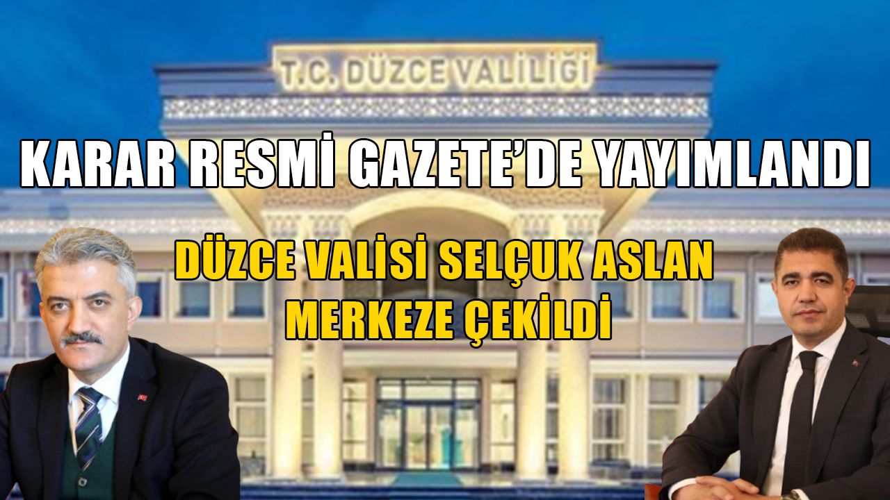 Resmi Gazete’de yayımlanan Cumhurbaşkanı Kararnamesi ile Ağustos 2023’ten bu yana Düzce Valiliği görevini yürüten Vali Selçuk Aslan merkeze alınırken, Düzce Valiliği’ne ise Kırıkkale Valisi Mehmet Makas atandı.