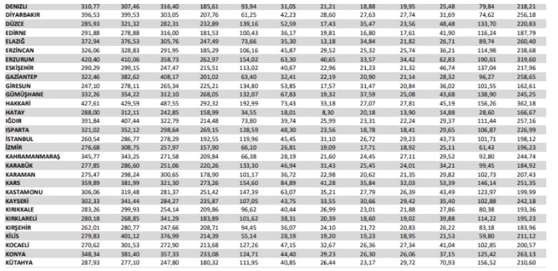 Düzce için açıklanan aylık ortalama tüketim miktarları ise şöyle: