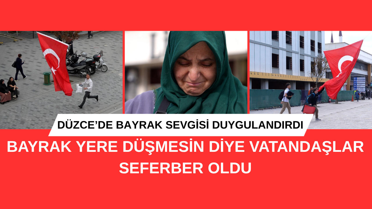 Şehir merkezinde zabıta ekiplerinin bayrak asma işlemi esnasında vatandaşlardan yardım istediği sırada, görevli personel senaryo gereği bayrağı elinden kaçırdı.