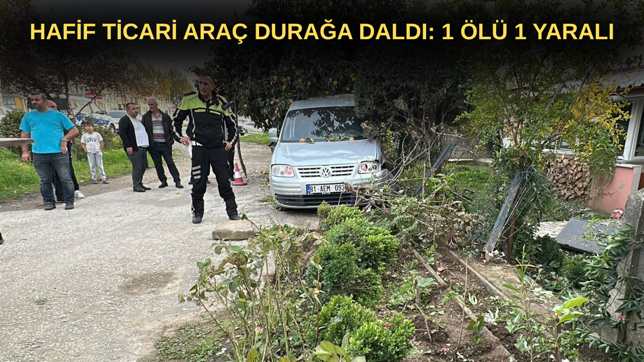 DÜZCE'DE FECİ KAZA! HAFİF TİCARİ ARAÇ DURAĞA DALDI: 1 ÖLÜ 1 YARALI