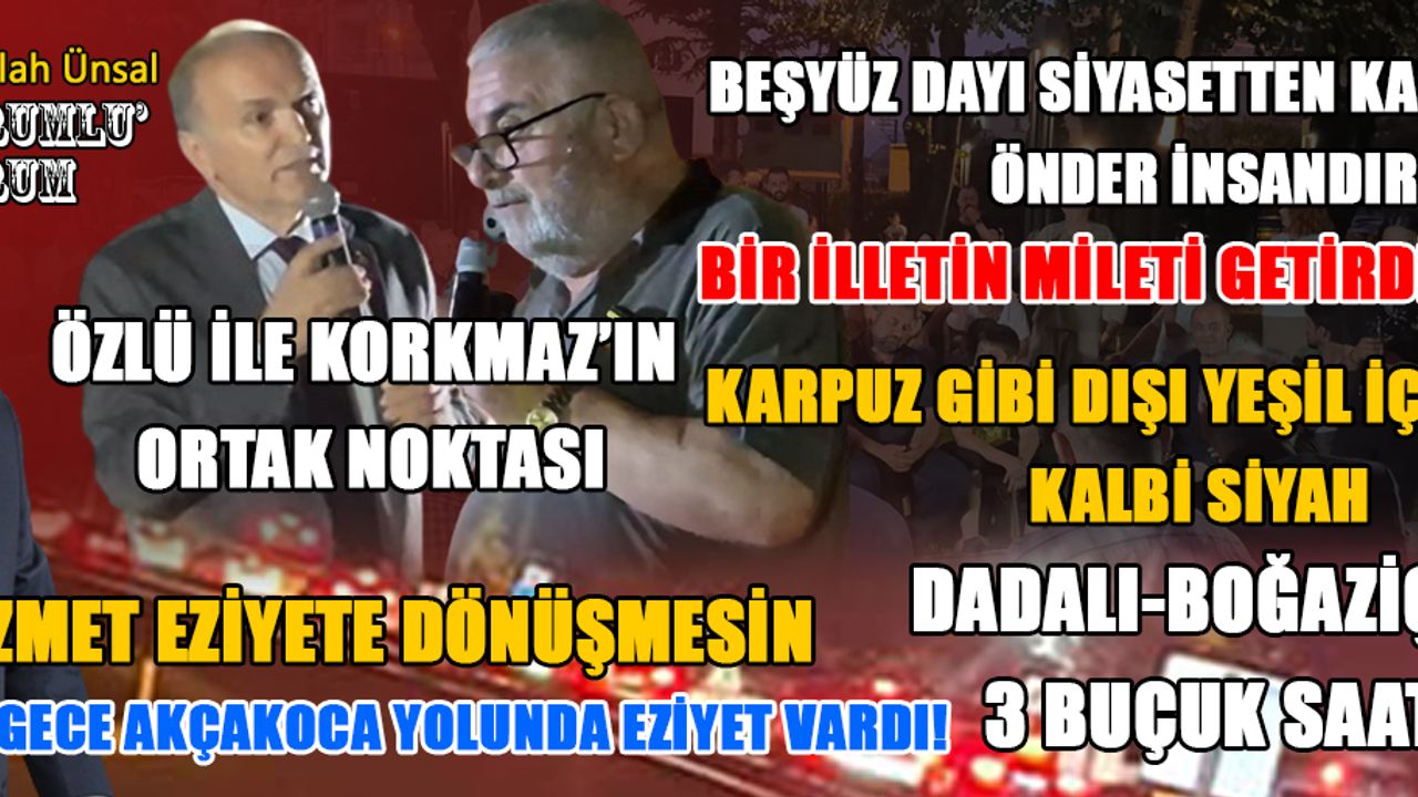 Ben buradan şu sonucu çıkarıyorum: Özlü’nün de Korkmaz’ın da ortak noktası Düzce. Düzce sevgileri hakikaten var. Her ikisinin de dünyalık baktığınız zaman siyasetten rant elde etmeyen özellikleri var.