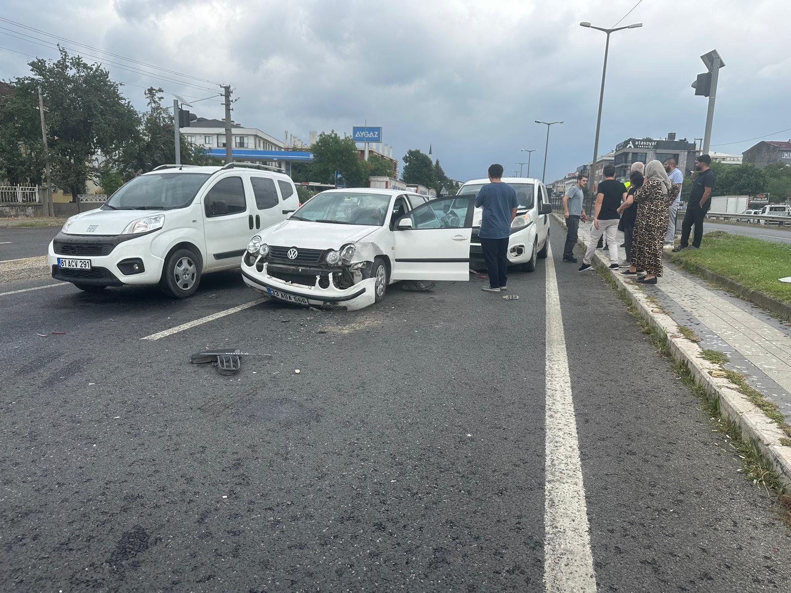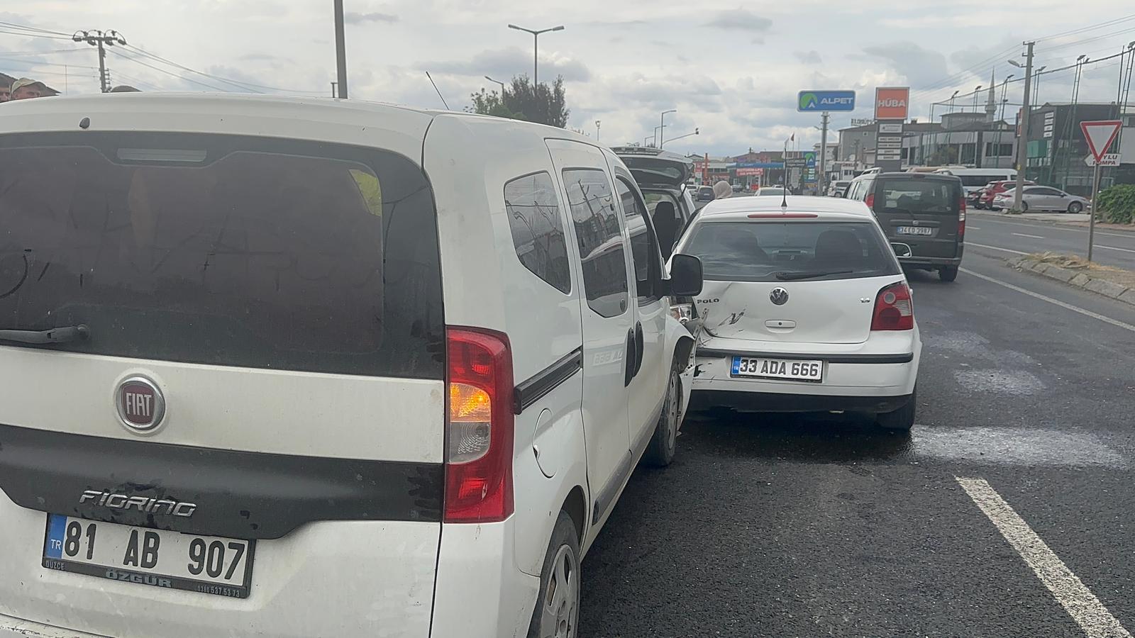 D-100 kara yolu İstanbul istikameti Öztürkler kavşağı mevkisinde S.A. idaresindeki 81 AEH 378 plakalı otomobil, aynı istikamette seyir halinde olan M.Y'nin kullandığı 33 ADA 666 plakalı otomobil ve E.G. yönetimindeki 81 AB 907 plakalı hafif ticari aracın karıştığı zincirleme trafik kazası meydana geldi.