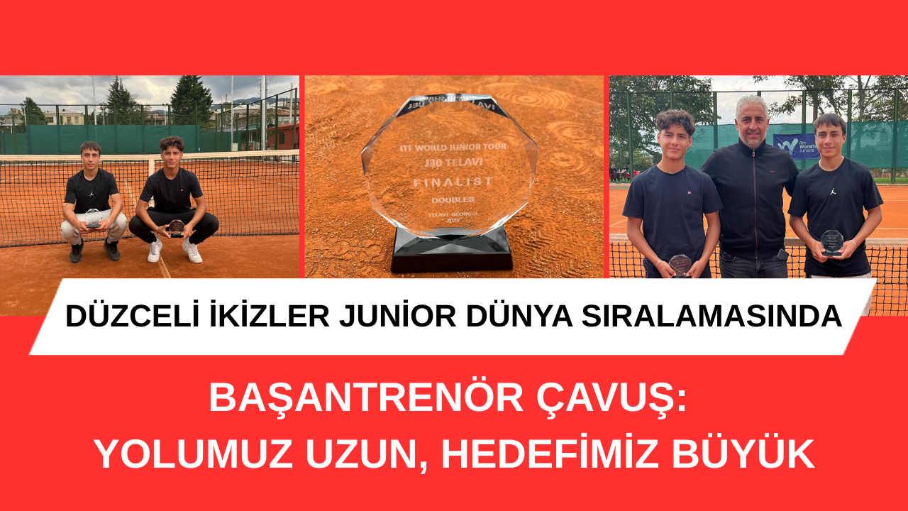 Düzce'de antrenör babalarının yönlendirmesiyle başladıkları teniste ulusal ve uluslar arası çok sayıda derece elde eden ikizler Eren ve Tuna Çavuş, başarılarına yenilerini eklemeye devam ediyor.
