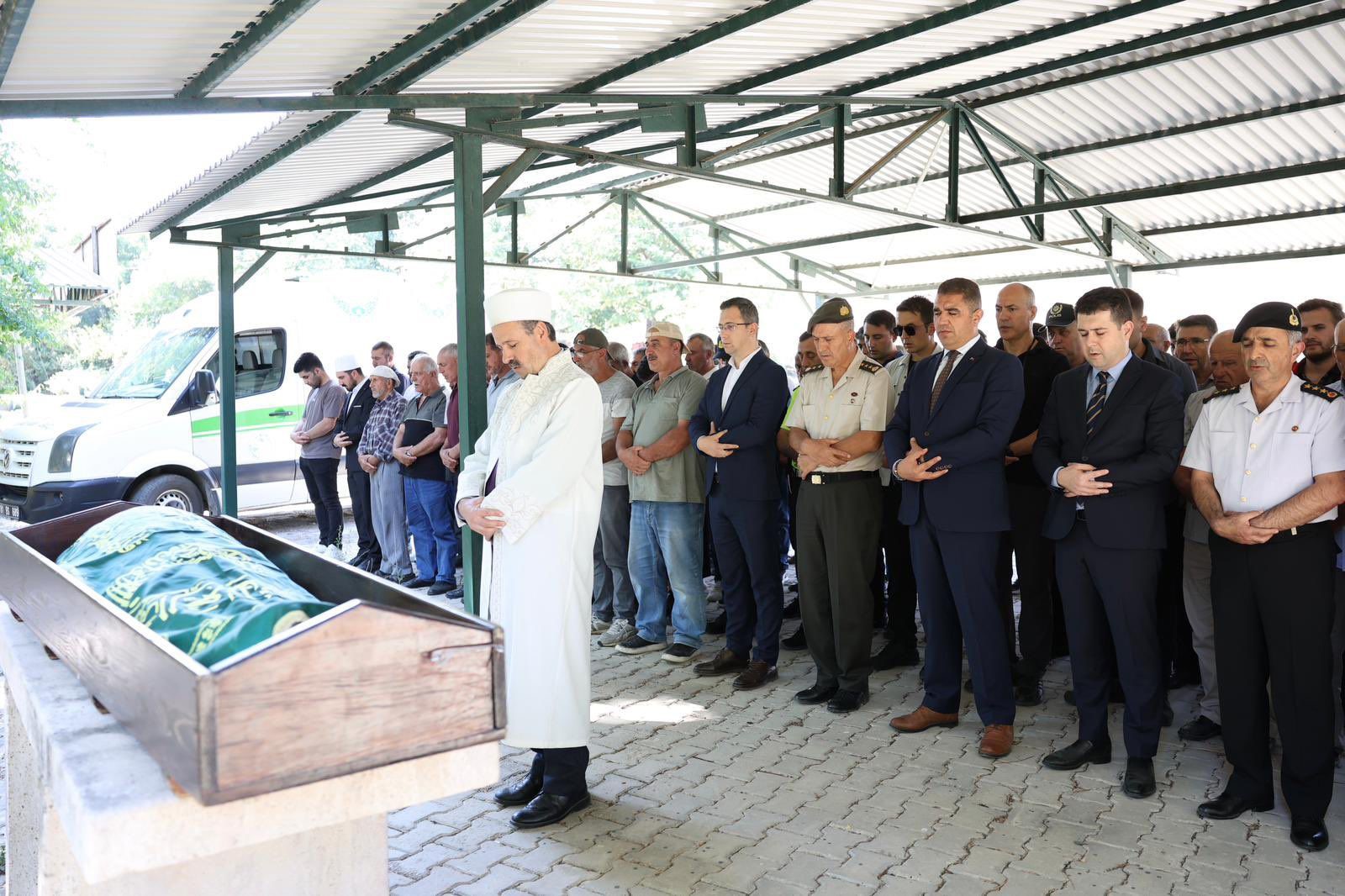 Düzce Valisi Selçuk Aslan ve protokol üyeleri, vefat eden gazinin son yolculuğu için Gölyaka İçmeler Köyü’nde düzenlenen cenaze namazına katıldı. Vali Aslan, Hasan Er’in ailesine başsağlığı dileyerek şanlı Türk bayrağını aileye teslim etti.