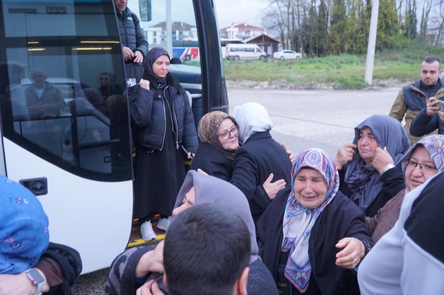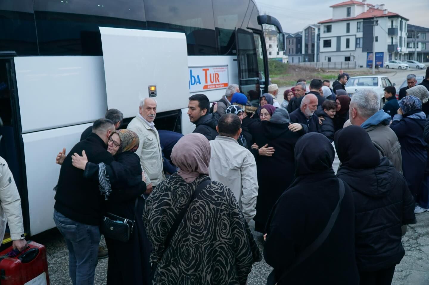 Düzceli umreciler, Türk Hava Yolları’na ait uçakla İstanbul Havalimanı’na ulaştı. Buradan AK Parti Düzce teşkilatı tarafından tahsis edilen otobüsle Düzce’ye getirilen vatandaşlar, ailelerine kavuşmanın mutluluğunu yaşadı.