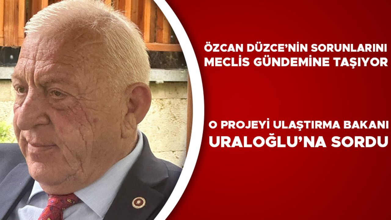 CHP Düzce Milletvekili ve Dışişleri Komisyonu Üyesi Talih Özcan, Düzce’nin sorunlarını Türkiye Büyük Millet Meclisi’ne(TBMM) taşımaya devam ediyor. Özcan, son olarak yıllardır çaba gösterilmesine rağmen, Ankara ve İstanbul’un tam ortasında bulunan, hızla gelişen Düzce’nin söz konusu projeye dahil edilmemesinin, kentin kalkınmasına büyük bir darbe vuracağını belirtti.