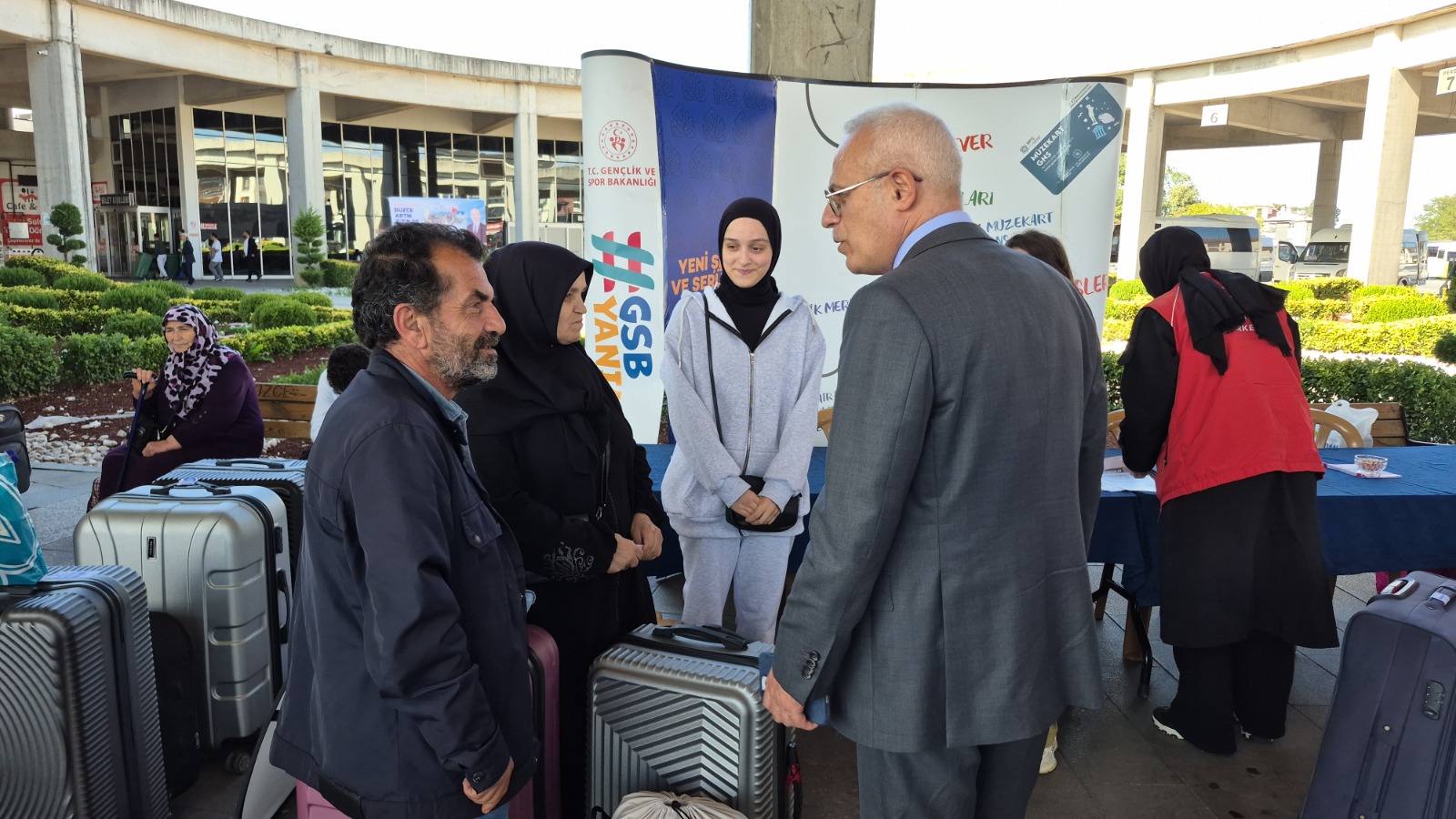 Matematik Öğretmenliğini kazanan Fatma Nargür ise Bursa’dan geldiğini belirterek, şunları söyledi, “Terminalde karşıladı arkadaşlar. Buradan yurda gitmek çok zor belediye otobüsleri tıklım tıklım oluyor. GSB Sağolsun. Sayelerinde rahat şekilde yurdumuza gideceğiz. Burada karşılanmada çok güzeldi. Sağolsun arkadaşlar okulumuz ve yurdumuz hakkında bilgiler verdiler.”